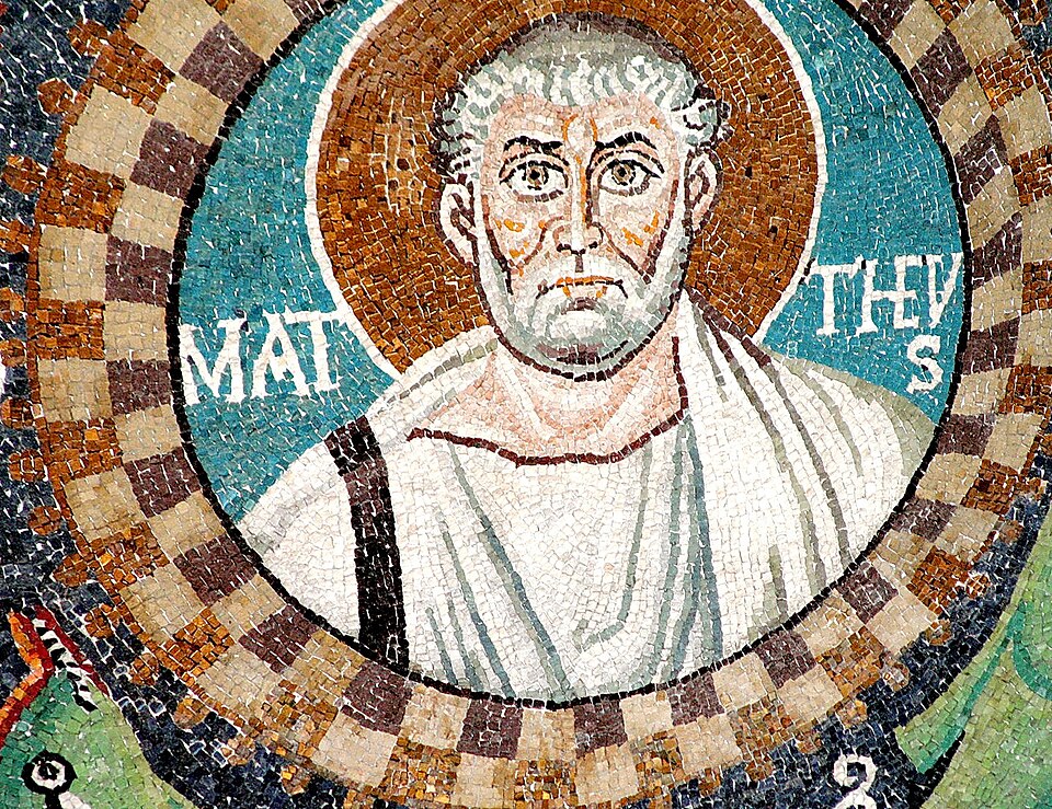 Mortel, Richard. Mosaic decoration in the introados of the triumphal arch, Basilica of San Vitale, 526-467; Ravenna. Fotografía. Wikimedia Commons, https://commons.wikimedia.org/wiki/File:Matthew_the_Apostle._Detail_of_the_mosaic_in_the_Basilica_of_San_Vitale._Ravena,_Italy.jpg. CC BY 2.0.